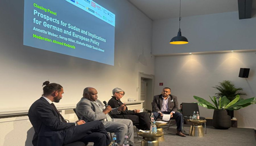 وشارك الوفد في مؤتمر نظمته مجموعة من المنظمات والجهات الألمانية والدولية المهتمة بالحرب في السودان وانعكاساتها السياسية والإنسانية، حيث كان أعضاء الوفد حضورا ومشاركة في كل الجلسات عبر ممثلين في منصة المؤتمر الرئيسية التي ناقشت كل الجوانب السياسية والإنسانية للحرب في السودان. وقد شارك في جلسات المؤتمر السيد يان إيقلاند سكرتير المجلس النرويجي للاجئين ومساعد سكرتير الأمم المتحدة السابق للشؤون الإنسانية والسيدة أنيتا ويبر مبعوثة الاتحاد الأوروبي للقرن الافريقي، والخبير الافريقي عبدول محمد، وعدد من الخبراء الالمان والأوروبيين بجانب عدد من الناشطين والناشطات السودانيين المقيمين بألمانيا.