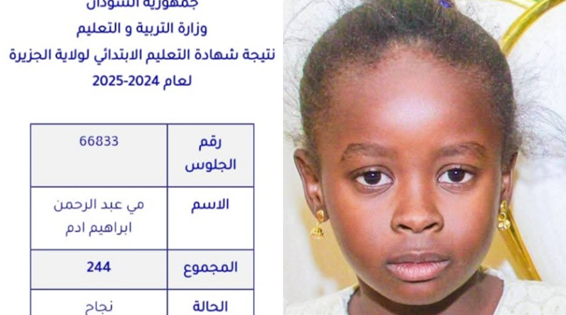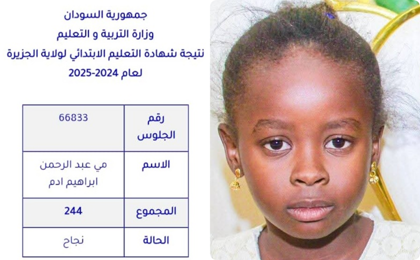 نرفع أصدق عبارات الفخر والاعتزاز إلى تلميذتنا النابغة مي عبد الرحمن ابراهيم بمناسبة تفوقها الباهر في امتحانات مرحلة الأساس – الصف السادس، من مدرسة الفاروق الابتدائية المختلطة بحلة موسى ريفي المعيلق وإحرازها المرتبة الأولى رغم قسوة الحرب وظروف النزوح من العاصمة إلى الجزيرة.